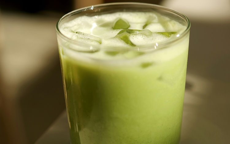 Blend together the milk, matcha powder, vanilla extract, and honey.